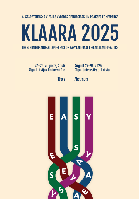 KLAARA 2025. 4. starptautiskā vieglās valodas pētniecības un prakses konference 2025. gada 27.–29. augustā Rīgā. Tēzes / The 4th International Conference on Easy Language Research and Practice, August 27–29, 2025, Rīga. Abstracts. Red. / Ed. Velga Polinska. Rīga: LU HZF Latviešu valodas institūts, 2025. 60 lpp.