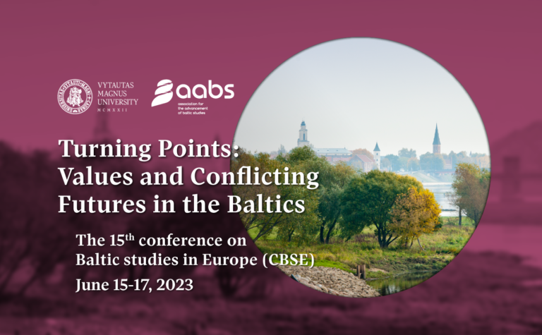 2023. gada 15.–18. jūnijā Vītauta Dižā Universitātē (Ķauņa, Lietuva) norisinājās 15. Baltijas studiju konference Eiropā „Pārmaiņu punkti: Vērtības un pretrunīgā nākotne Baltijā” (Turning Points: Values and Conflicting Futures in the Baltics), kurā piedalījās 445 dalībnieki no 25 valstīm – Lietuvas, Latvijas, Amerikas Savienotajām Valstīm, Austrālijas, Austrijas, Čehijas, Dānijas, Gruzijas, Horvātijas, Igaunijas, Indijas, Islandes, Itālijas, Izraēlas, Japānas, Kanādas, Lielbritānijas, Polijas, Rumānijas, Somijas, Šveices, Ukrainas, Ungārijas, Vācijas un Zviedrijas.