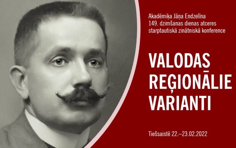 LU Latviešu valodas institūts aicina piedalīties akadēmiķa Jāņa Endzelīna 149. dzimšanas dienas atceres starptautiskā zinātniskā konferencē „VALODAS REĢIONĀLIE VARIANTI”, kas notiks 2022. gada 22.–23. februārī tiešsaistē Zoom.