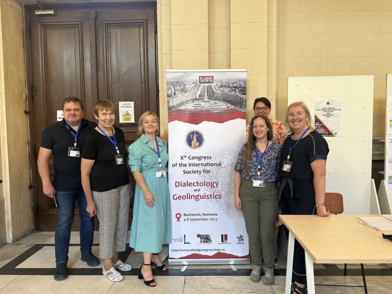 2023. gada 4.–8. septembrī LU Latviešu valodas institūta dialektologi ANETE OZOLA, ANNA STAFECKA, DAIRA VĒVERE, EDMUNDS TRUMPA, LIENE MARKUS-NARVILA un terminoloģe REGĪNA KVAŠĪTE piedalījās Starptautiskās Dialektoloģijas un ģeolingvistikas biedrības X kongresā Rumānijā, Bukarestes Universitātē, kur pulcējās aptuveni 200 dialektu un izlokšņu pētnieku no 30 valstīm. Tradicionālā dialektoloģija priekšlasījumos mijās ar pavisam jaunām izlokšņu izpētes metodēm (piemēram, dialektometriju), taču visus vienoja doma, ka dialekti joprojām pastāv un tie ir jāpēta. Uz dialektologu tikšanos mūsu pētnieki brauca ar valsts pētījumu programmas „Letonika latviskas un eiropeiskas sabiedrības attīstībai” projekta „Latviešu valodas daudzveidība laikā un telpā” (Nr. VPP-LETONIKA-2021/4-0003), projekta „LU doktorantūras kapacitātes stiprināšana jaunā doktorantūras modeļa ietvarā” (Nr. 8.2.2.0/20/I/006) un LU projekta „Latvijas Universitāte un institūti Eiropas pētniecības telpā – ekselence, aktivitāte, mobilitāte, kapacitāte” (Projekta līg.nr.: Nr. 1.1.1.5/18/I/016) atbalstu.